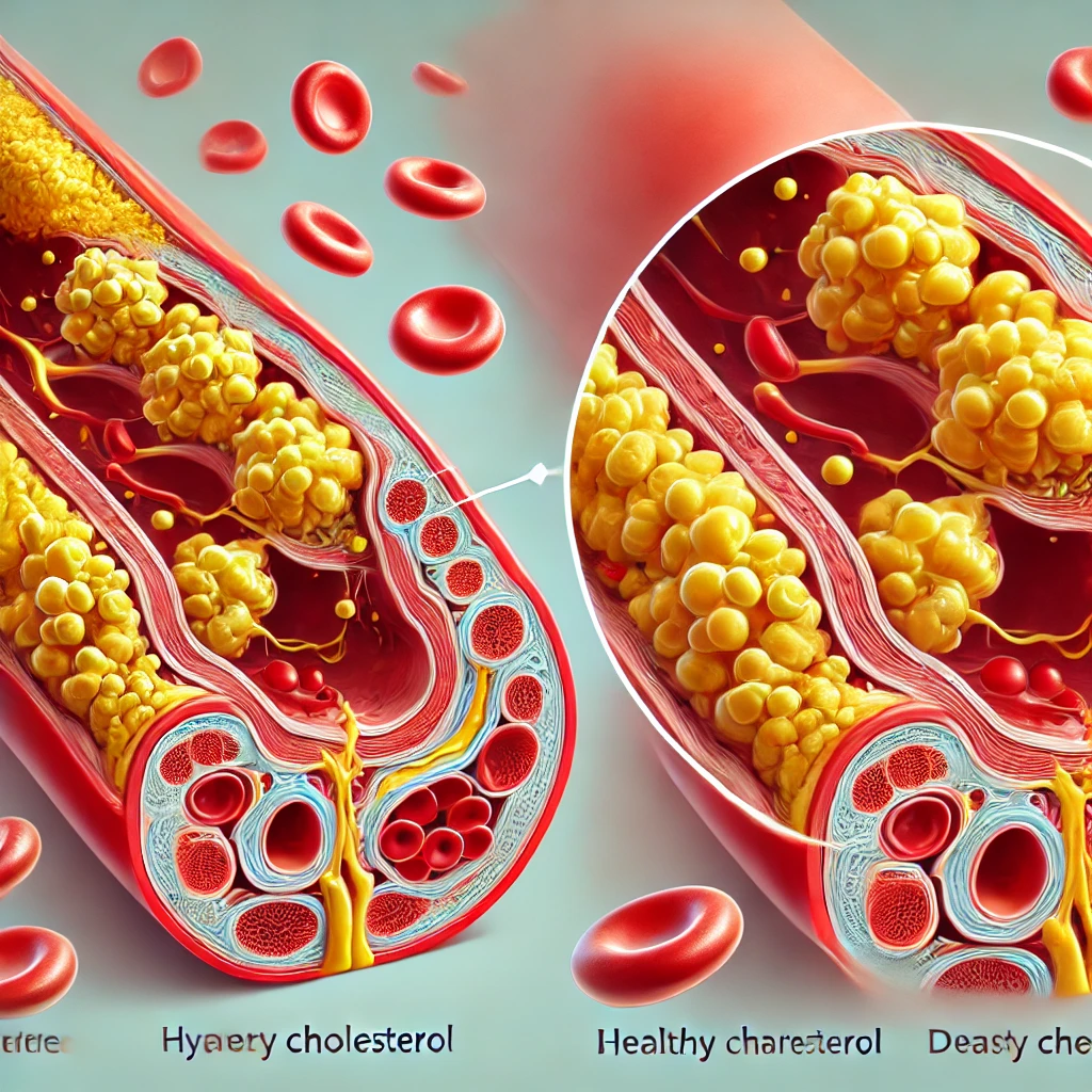 혈관 벽에 쌓여 동맥경화를 유발하며, 심혈관 질환의 주요 원인이 됩니다.